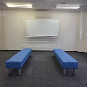 備品:机・長椅子・ホワイトボード・スマホ用三脚